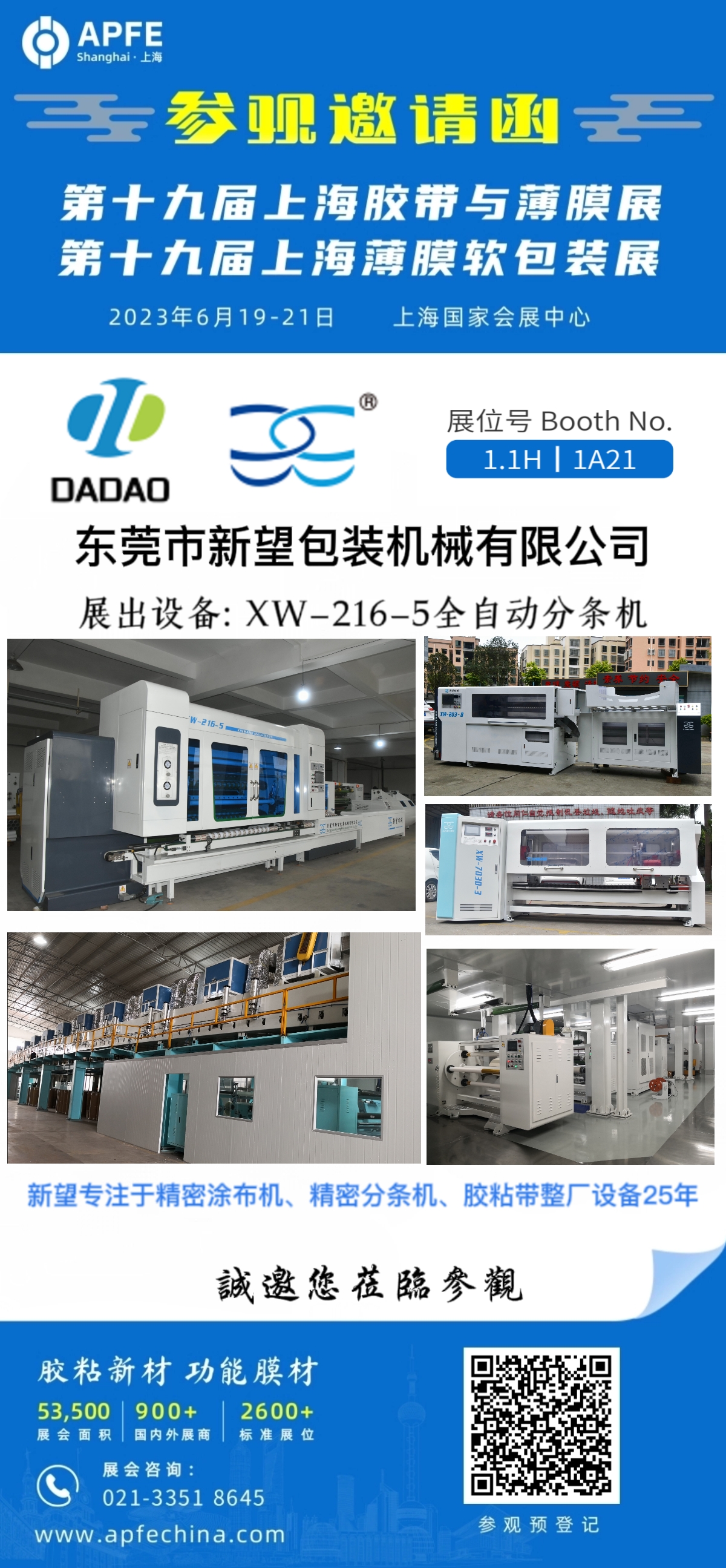 #第十九屆上海國(guó)際膠帶與薄膜展覽會(huì)#第十九屆上海國(guó)際薄膜軟包裝展覽會(huì) 2023年6月19日至21日 上海國(guó)家會(huì)展中心1.1H館 展位號(hào)1A21,期待您的蒞臨指導(dǎo),與您不見(jiàn)不散